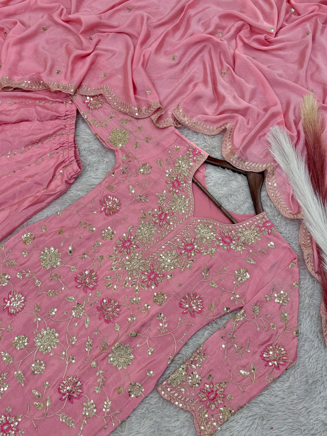 Outstanding Sequence And Thread Work Pink Color Sharara Suit