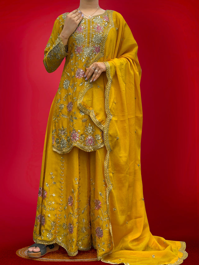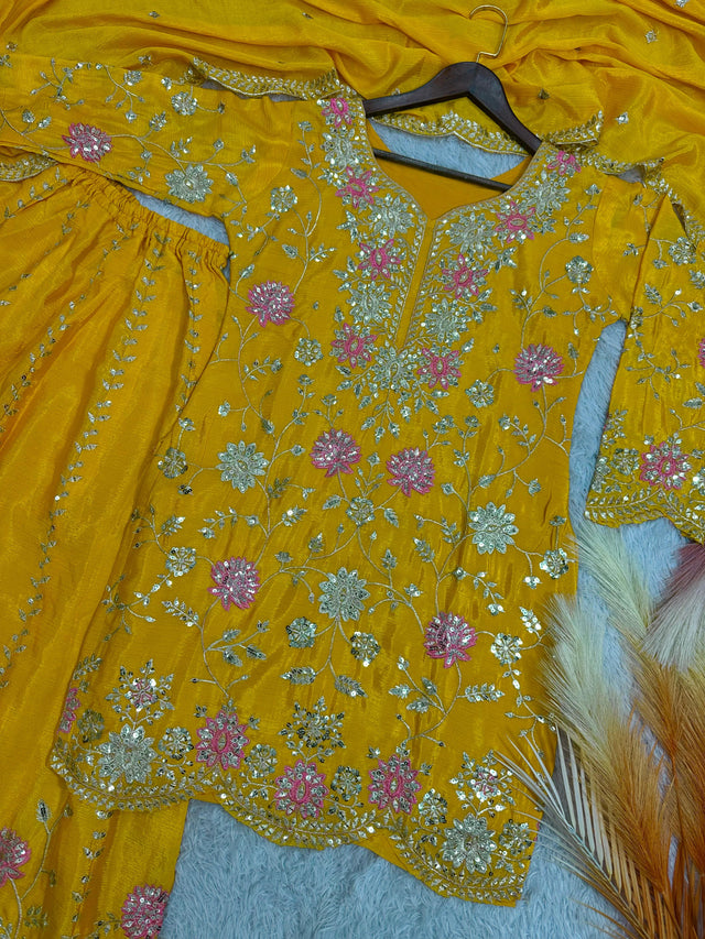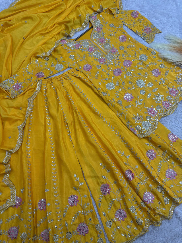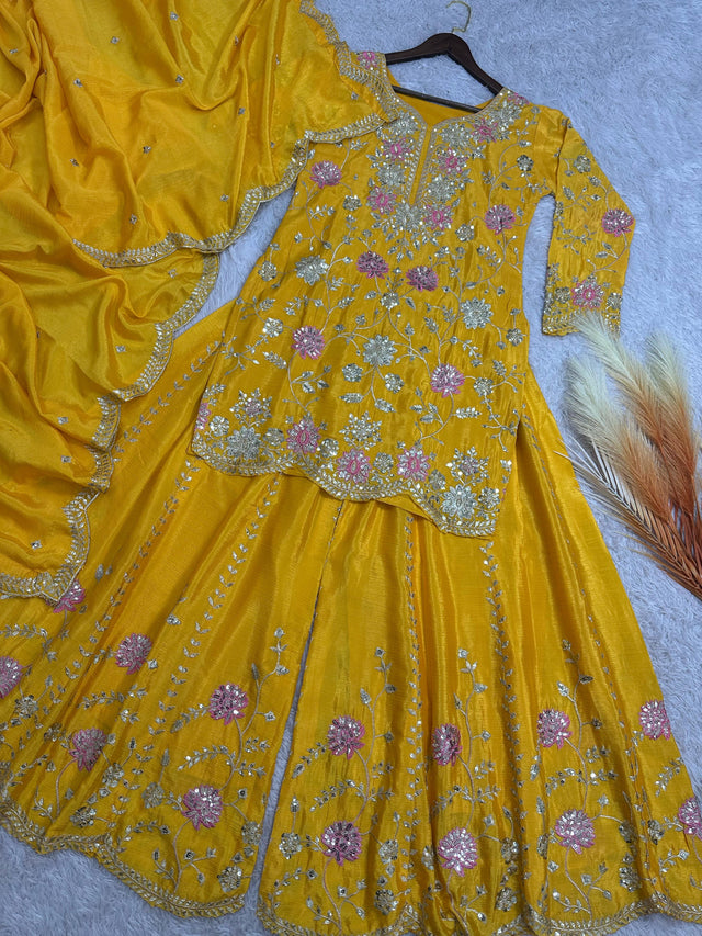 Outstanding Sequence Haldi Wear Yellow Color Sharara Suit