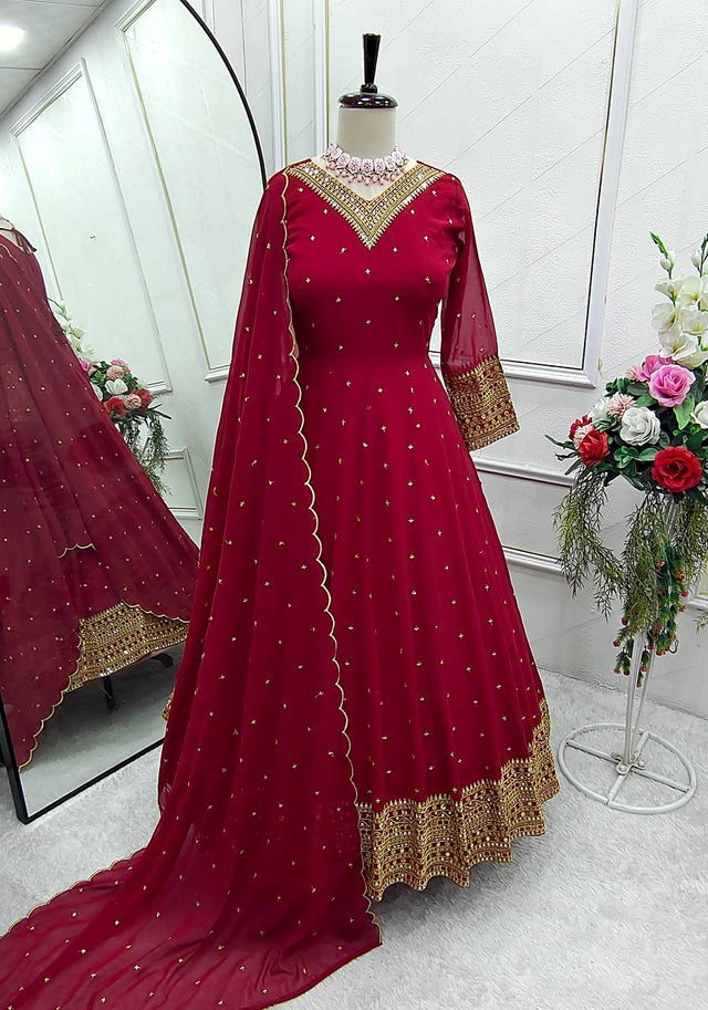Outstanding Sequence Work Red Color Gown With Dupatta