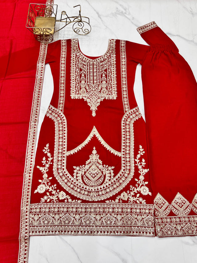 Outstanding Vichitra Silk Red Color Palazzo Suit