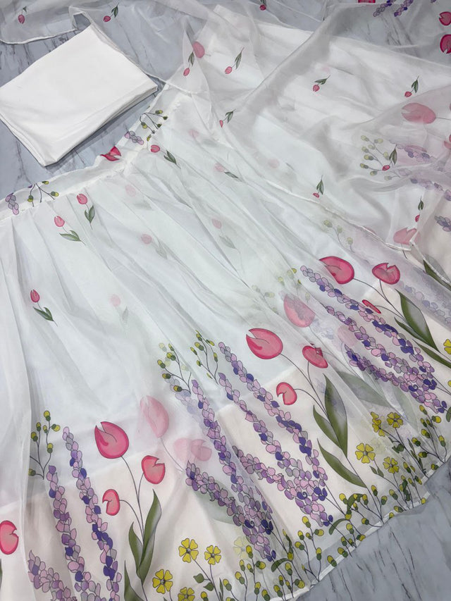 Party Wear Multi Floral Print White Color Lehenga Choli