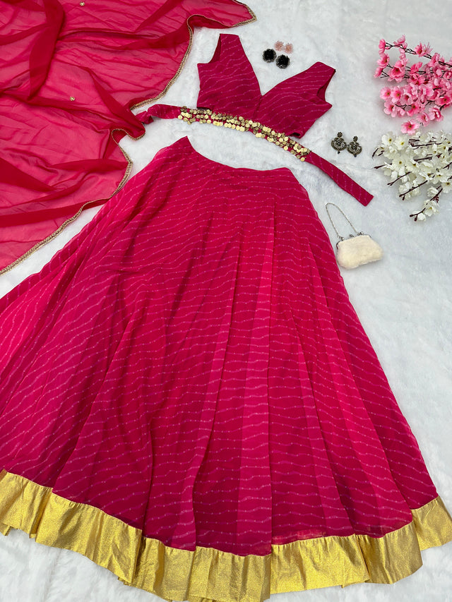 | Work | Printed Lehnga With Canvas Patta And Waist Dori Fully Stitched |