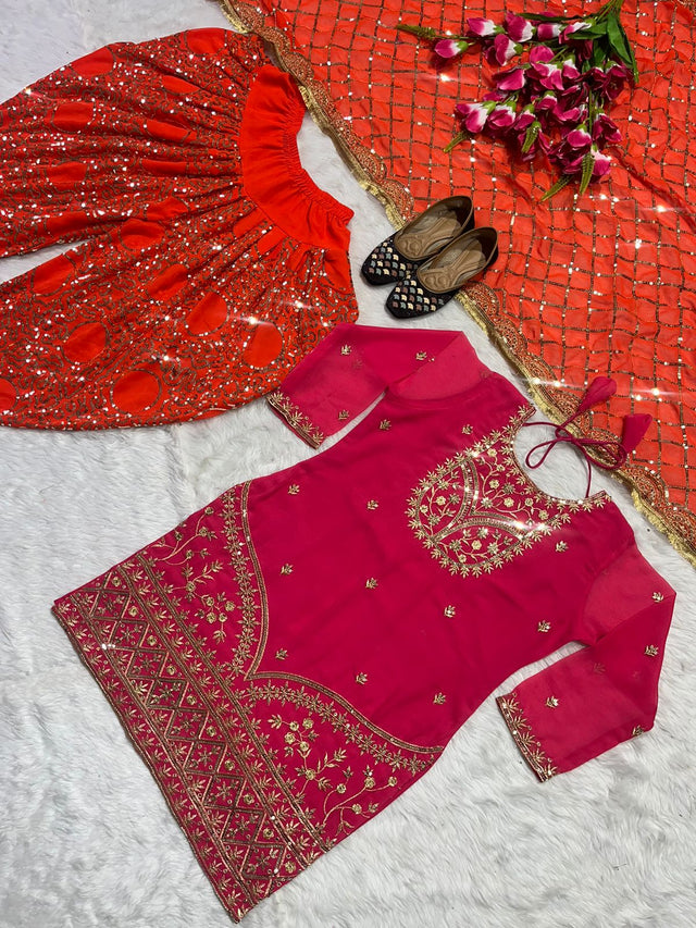 Party Wear Pink Color Sequence Work Dhoti Salwar