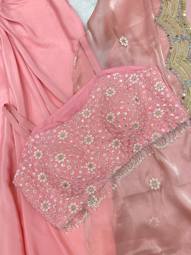 Pattern Wedding & Party Wear Pink Color Dhoti Suit With Shrug