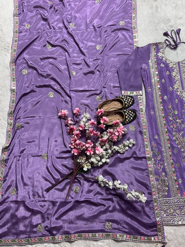 Pattern Wedding & Party Wear Sequence Work Purple Color Sharara Suit