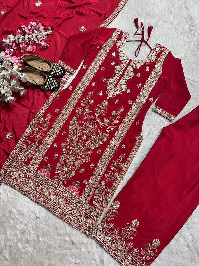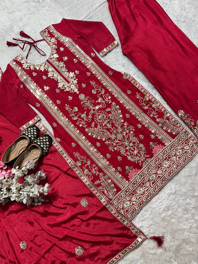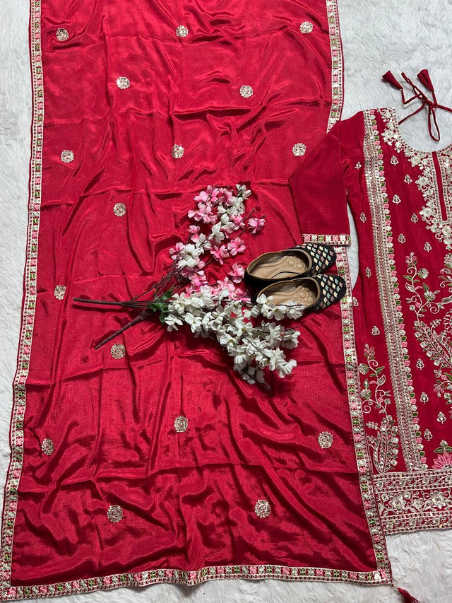 Pattern Wedding & Party Wear Sequence Work Red Color Sharara Suit
