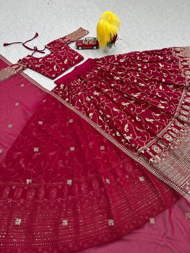 Pattern Wedding & Party Wear Sequence Work Red Color lehenga choli