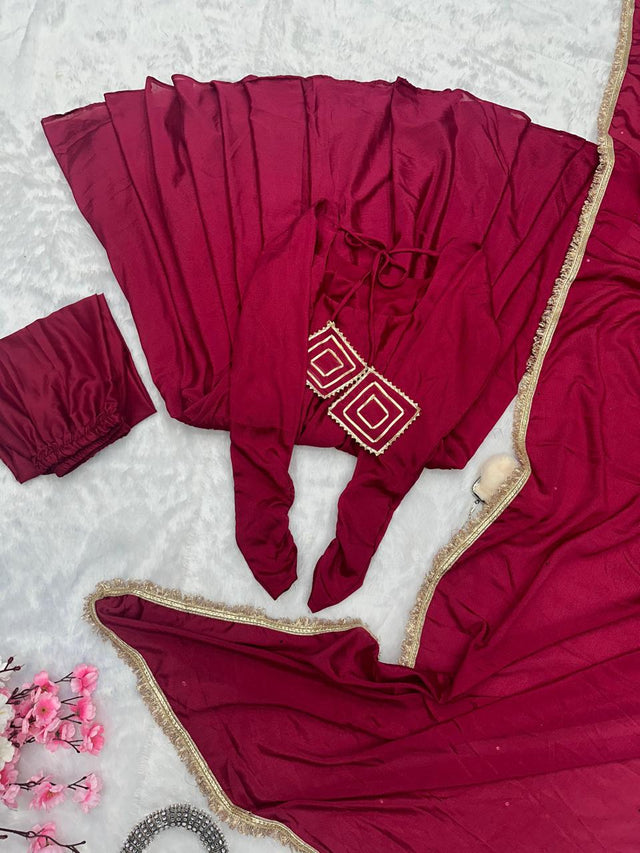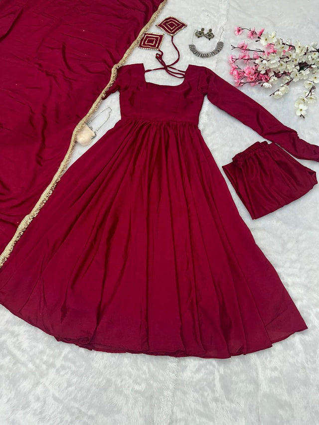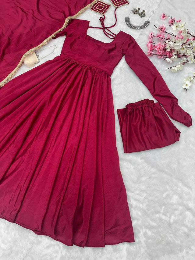 Peaceful Maroon Color Chinnon Silk Anarkali Gown