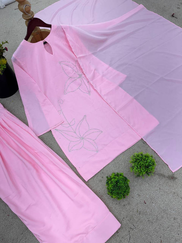 Pink Color Diamond Work Stunning Palazzo Suit