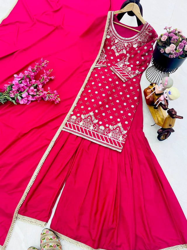 Pink Color Embroidery With Sequence Work Sharara Suit