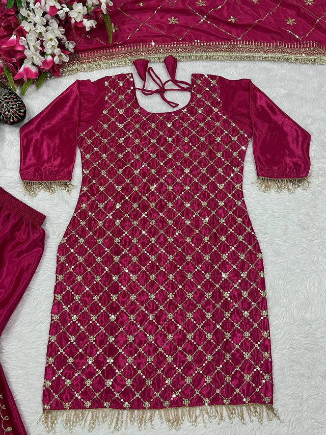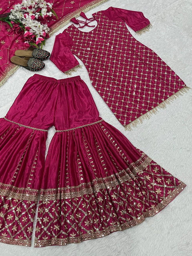 Pink Color Full Sequence Work Sharara Suit