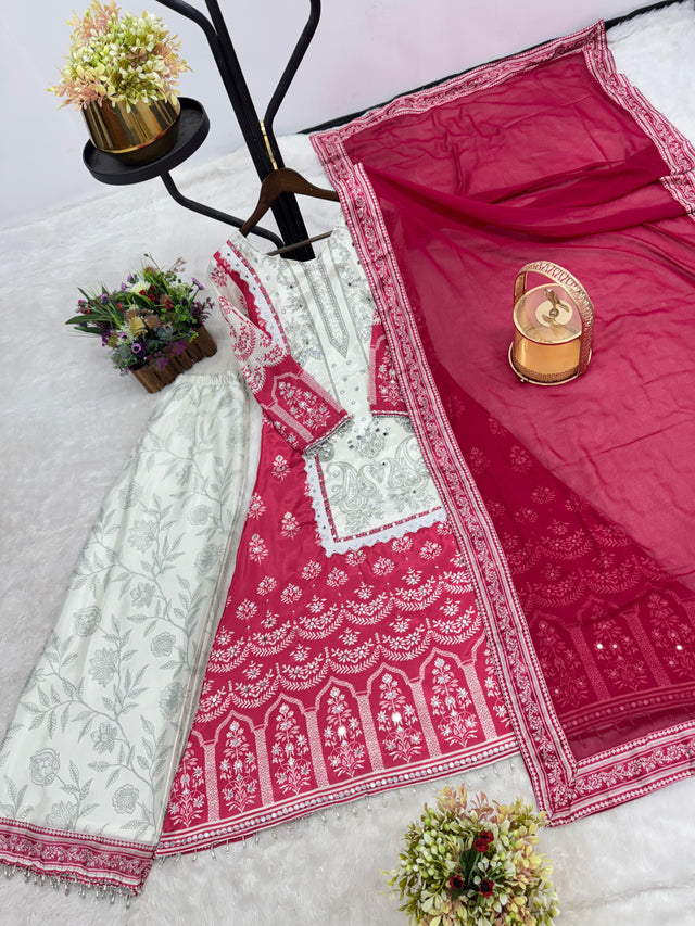 Dupatta Fabric : Heavy Faux Georgette With Digital Printed Lace Border