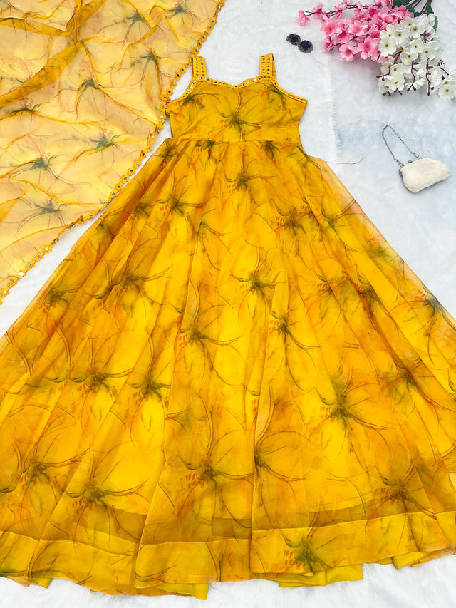 Preferable Digital Printed Yellow Color Anarkali Suit