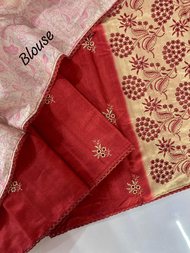 Preferable Embroidery With Cut Work Designer Red Color Sarees