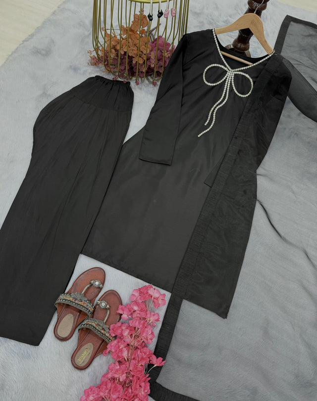 Top Fabric : Pur Natural Crepe With Embroidery 5 mm Sequence Work With Sleeves