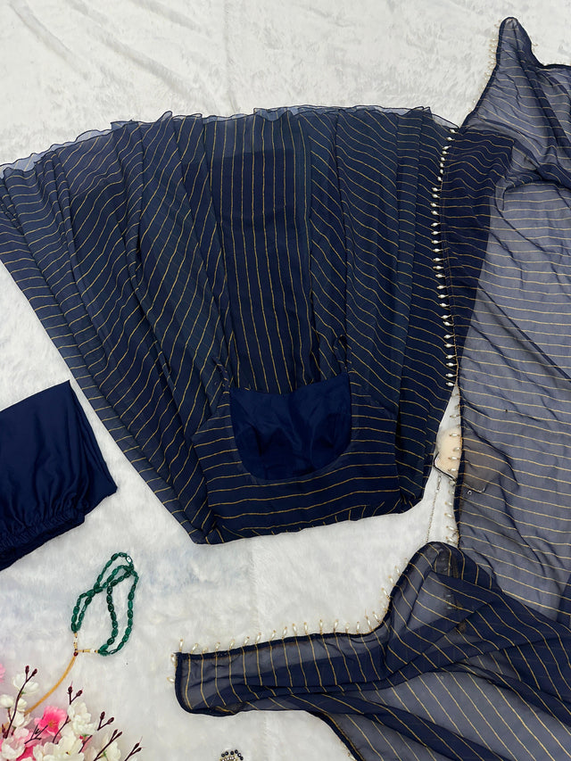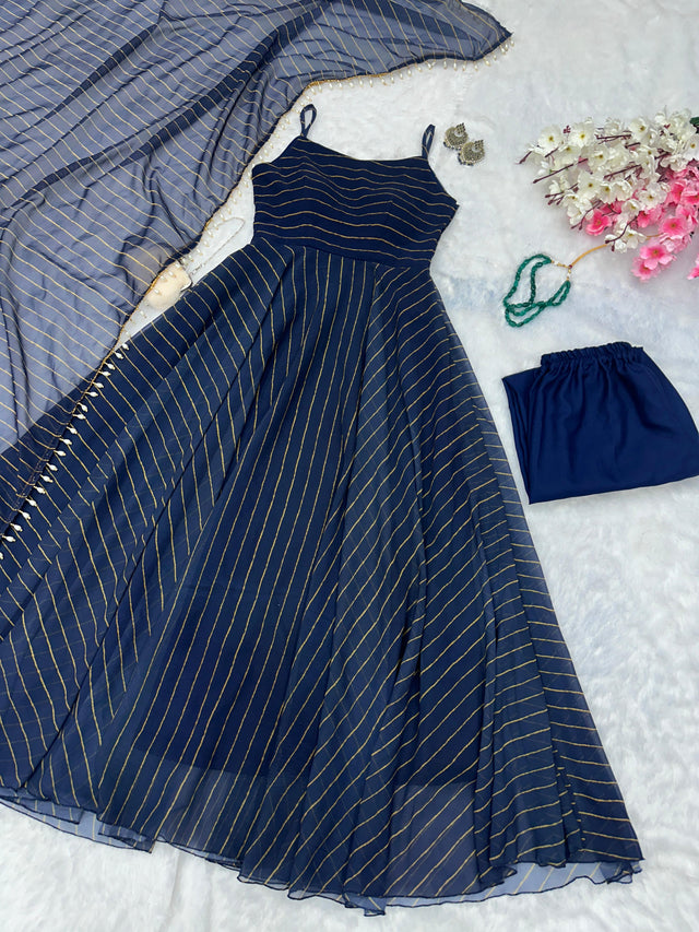 Presenting Georgette Navy Blue Color Anarkali Gown
