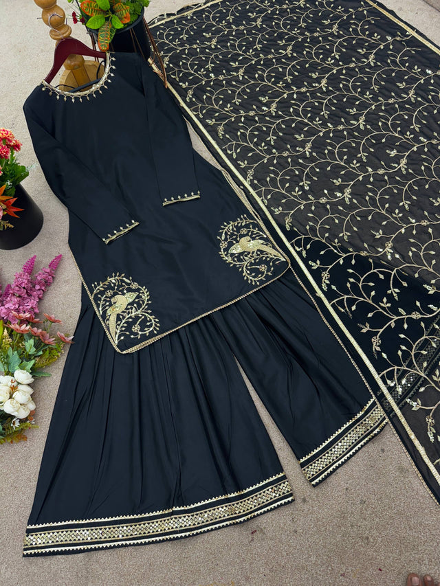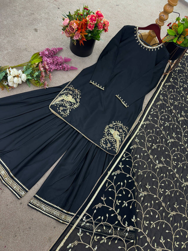 Pretty Black Color Sequence Work Sharara Suit