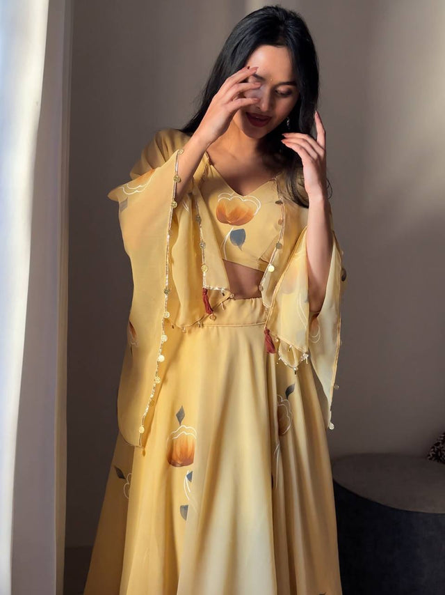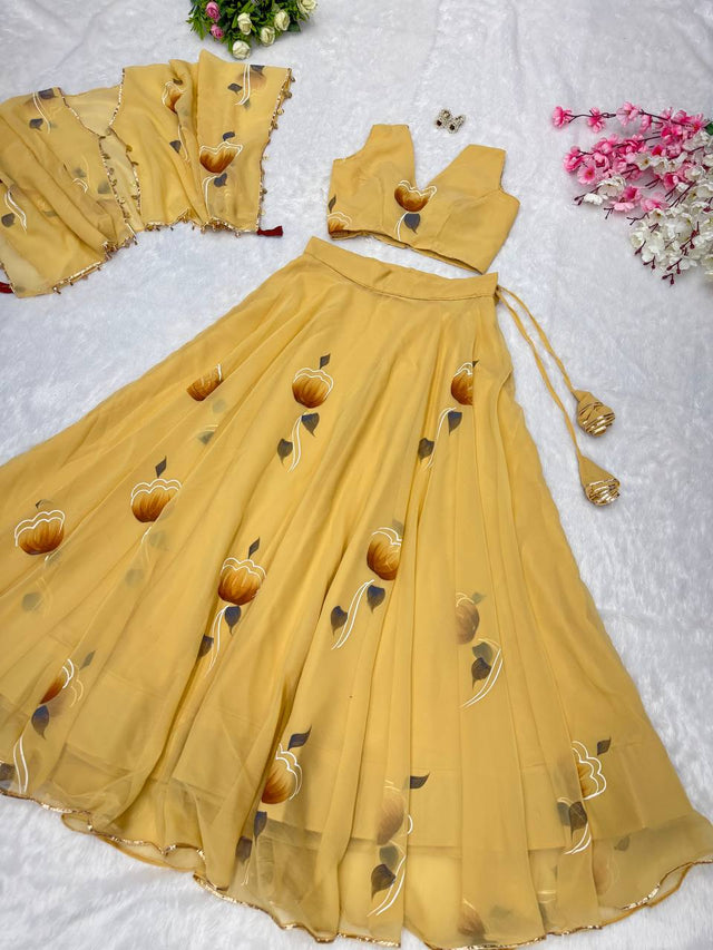 *lehenga* - Georgette hand painted 8mtr flair lehenga with canvas patta and adjustable waist Dori🌸
