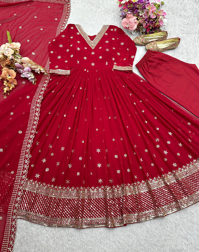 Gown Fabric : Pure Fox Georgette With Heavy Embroidery 5mm Sequence Work With Full-Sleeve With Cover Patta With (Attached Ped)