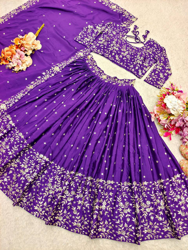 *lehenga Fabric* ย : Pure Satin Silk With Heavy Embroidery 5mm Sequence Work With Sleeve With (*Canvas-Patta*)