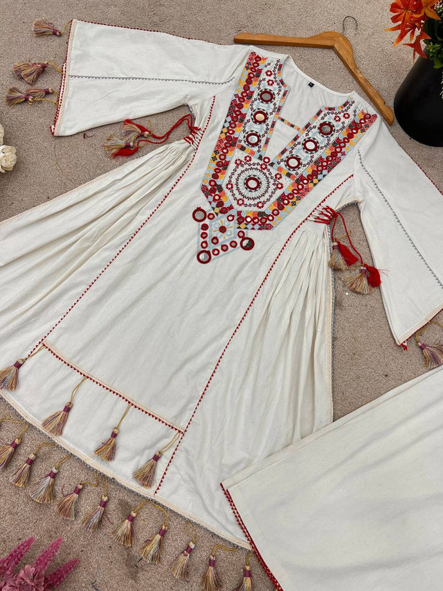 *Pure Khadi Cotton* With Embroidery Sequence Work With Real Mirror Work💐📌