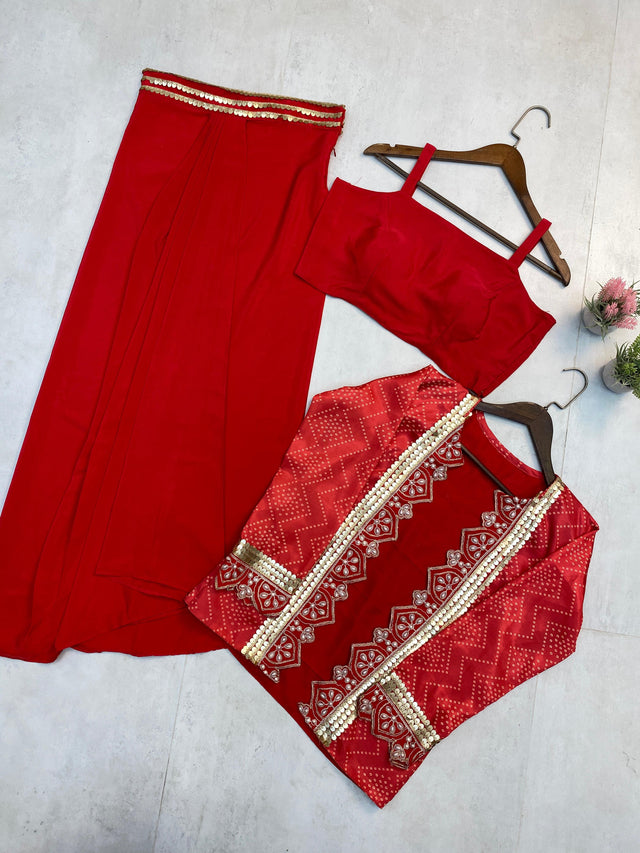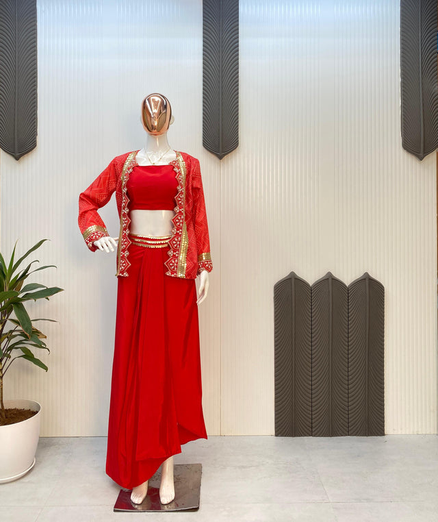 Ravishing Embroidery With Moti Work Red Color Dhoti Suit With Koti