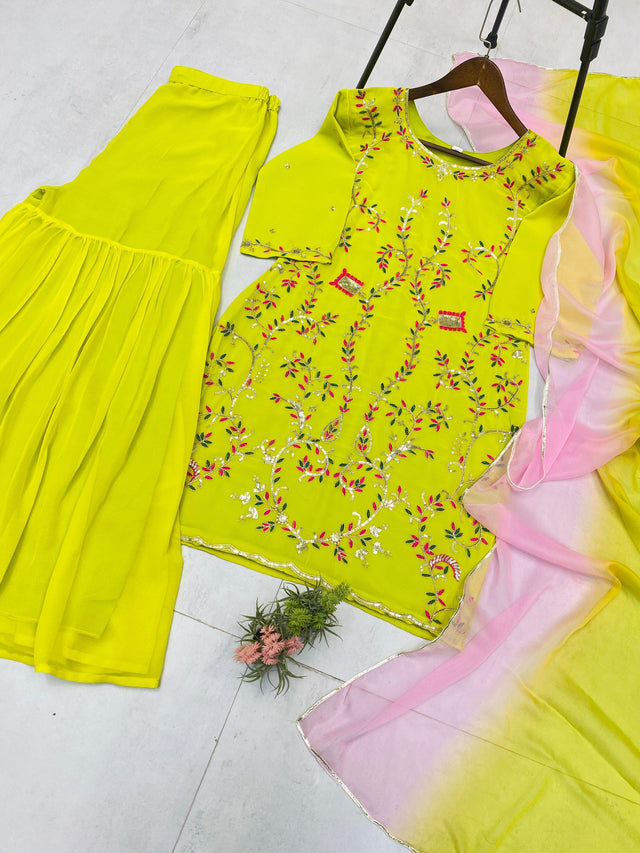Ravishing Lemon Color Sequence Work Georgette Sharara Suit