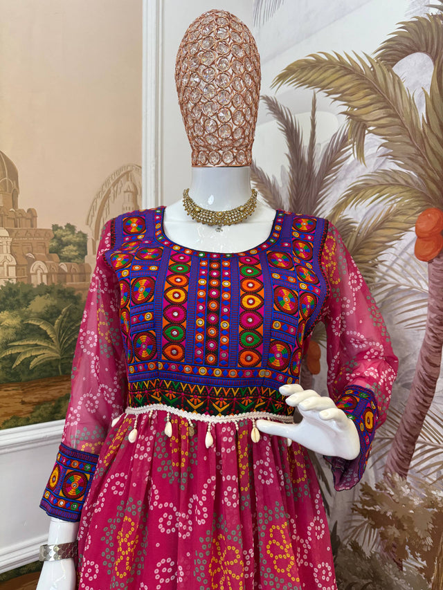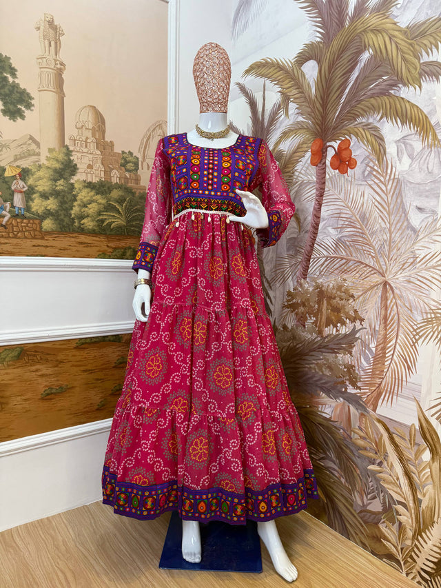 Ravishing Pink Color Georgette with Gamthi Work Gown