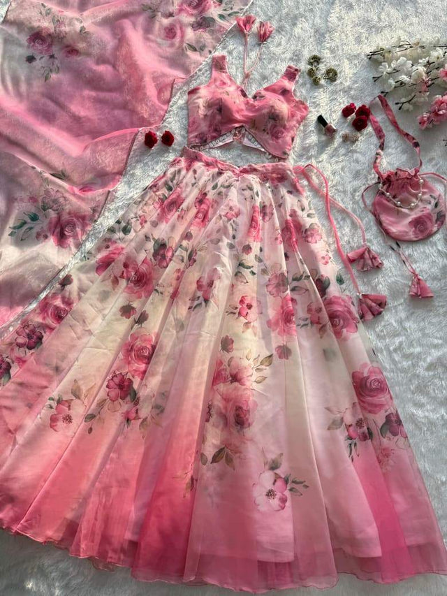 Ravishing Pink Color Organza Digital Printed Lehenga Choli
