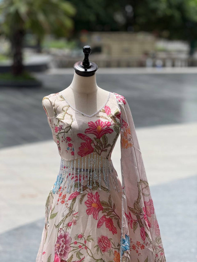lehenga - Pure jimmy Organza digital printed lehenga .8mtr flair lehenga with canvas patta, can can and with adjustable waist dori 🌸