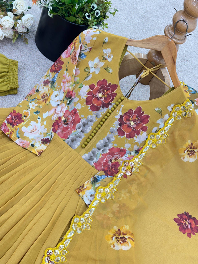 • Fabric: Heavy Fix Georgette With Embroidery Sequence Work With Digital Print With Fully Flair