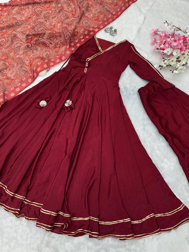 Anarkali - Pure Chinon Anarkali suit of huge flair with Lace Border đ¸