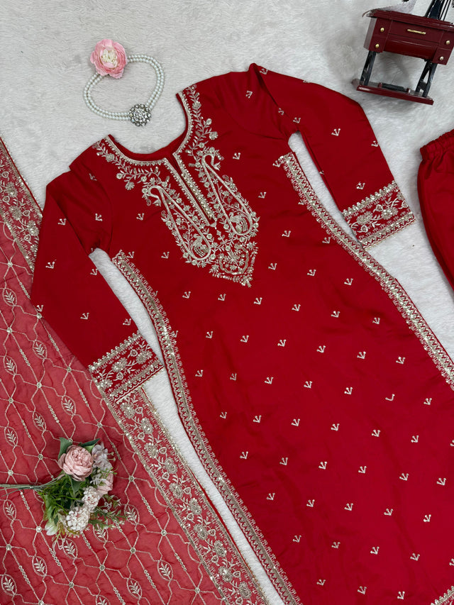 Red Color Heavy Work Salwar Suit