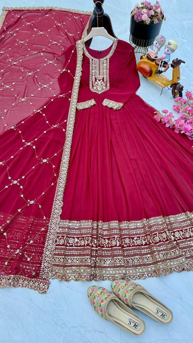 Red Color Sequence Work Festive Wear Gown