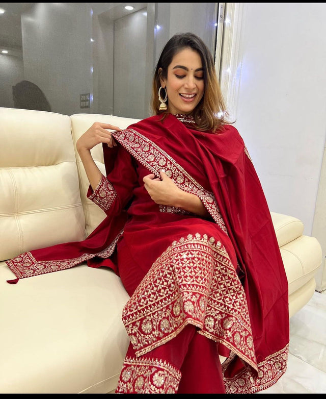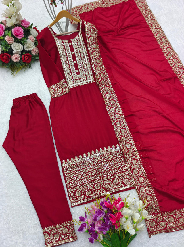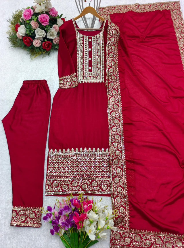 Red Color Traditional Wear Sequence Work Salwar Suit