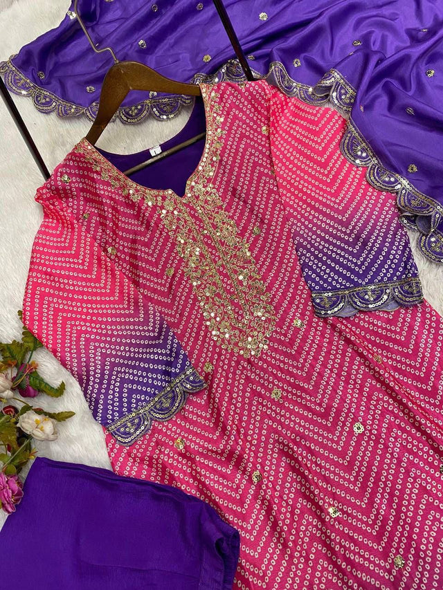 Pure Chinno Silk With Digital Print Sequence Embroidery Work On Dupatta (2.2 Mtr)