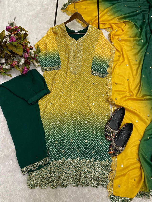 Shilpa Shetty Bollywood Yellow With Green Color Salwar Suit