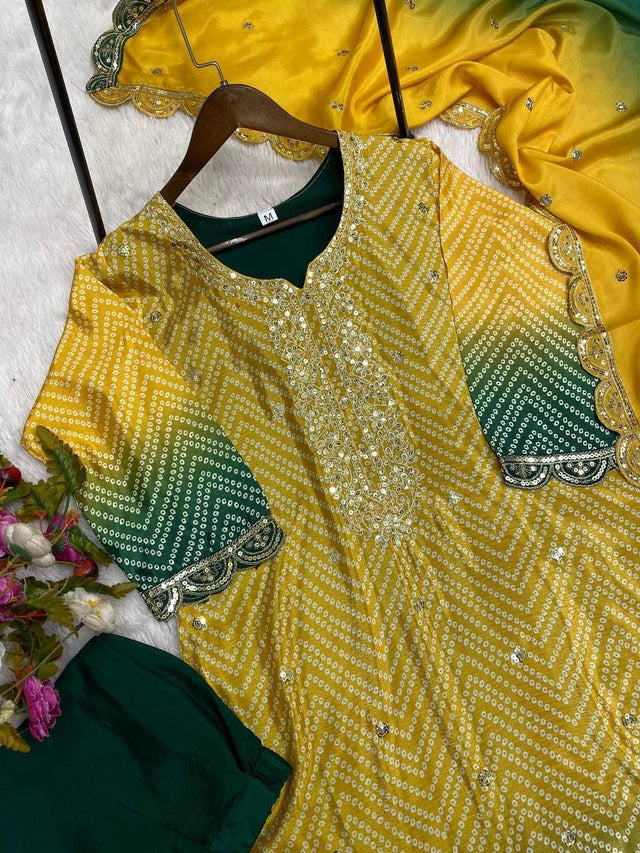 Pure Chinno Silk With Digital Print Sequence Embroidery Work On Dupatta (2.2 Mtr)