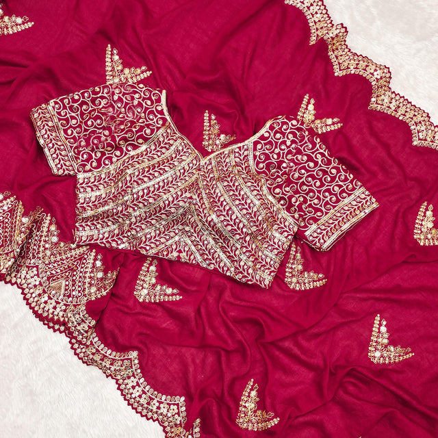 🥻 Sari Fabric : Pure Two Tone Vichitra Silk with Heavy Embroidery Coding & Sequins 🧵Work & Fancy CutWork Border