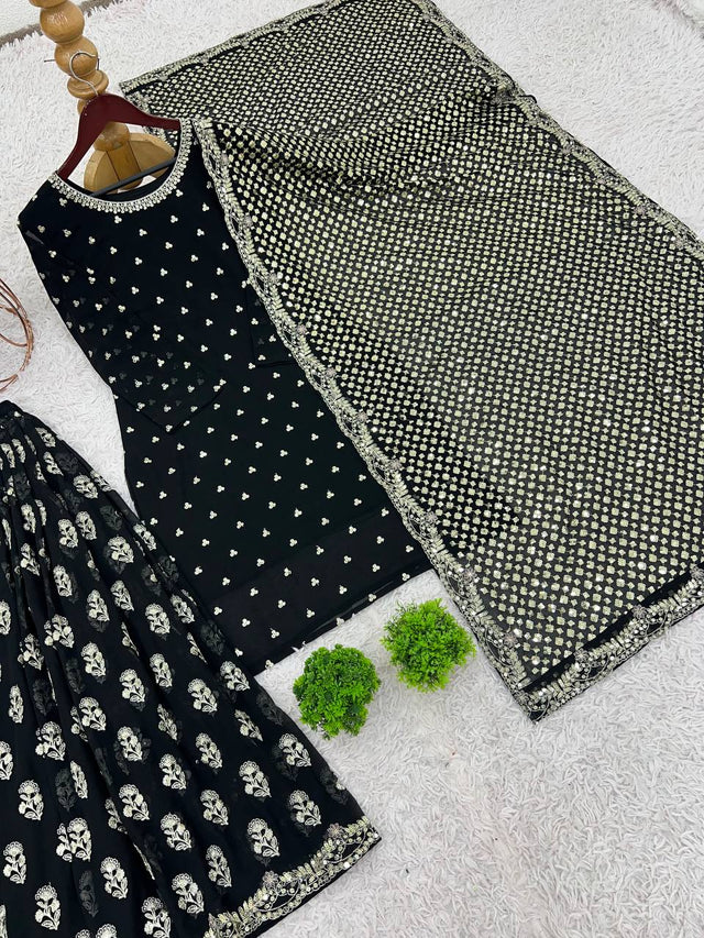 Shining Embroidery Work Black Color Sharara Suit