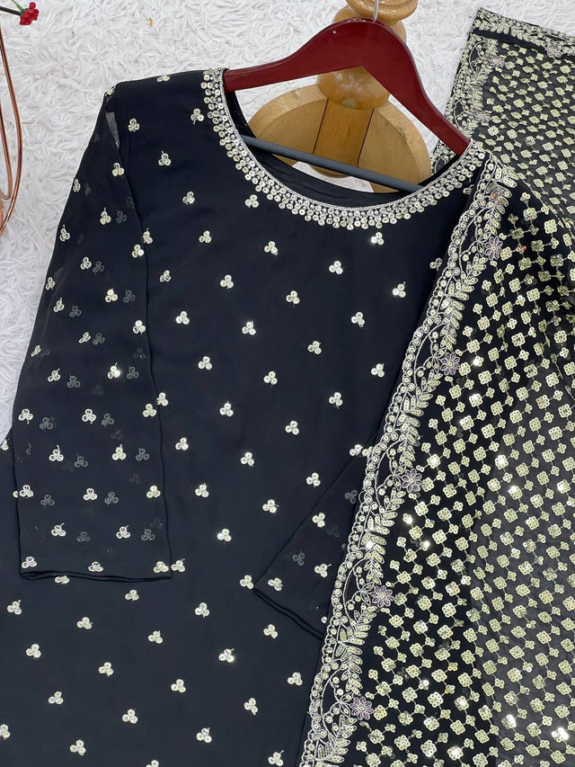 *Plazzo Fabrics* :Heavy Faux Georgette With Full Heavy Embroidery Sequence With Fully Flair