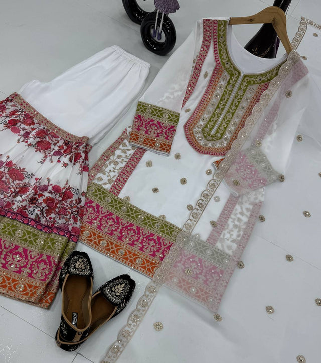 Stunning Embroidery Work White Color Palazzo Suit