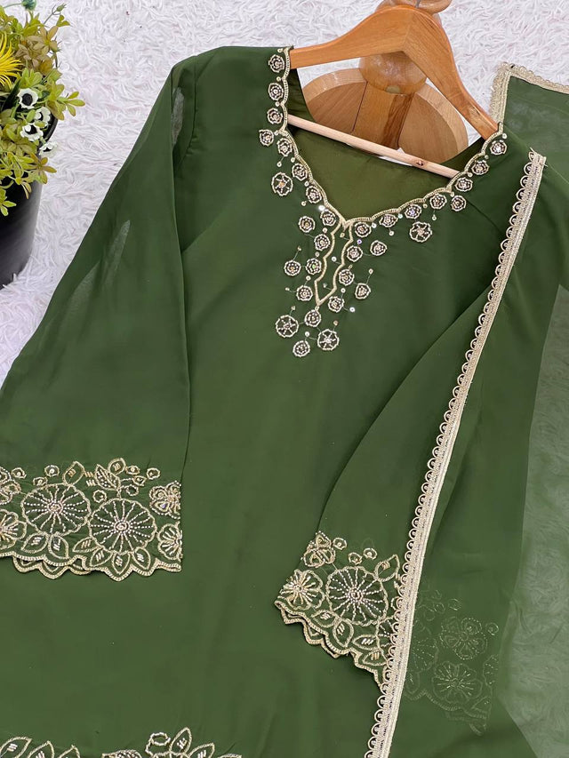 Stunning Georgette Mehndi Color Sharara Suit