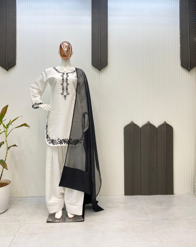 Stunning Roman Silk White Color Salwar Suit