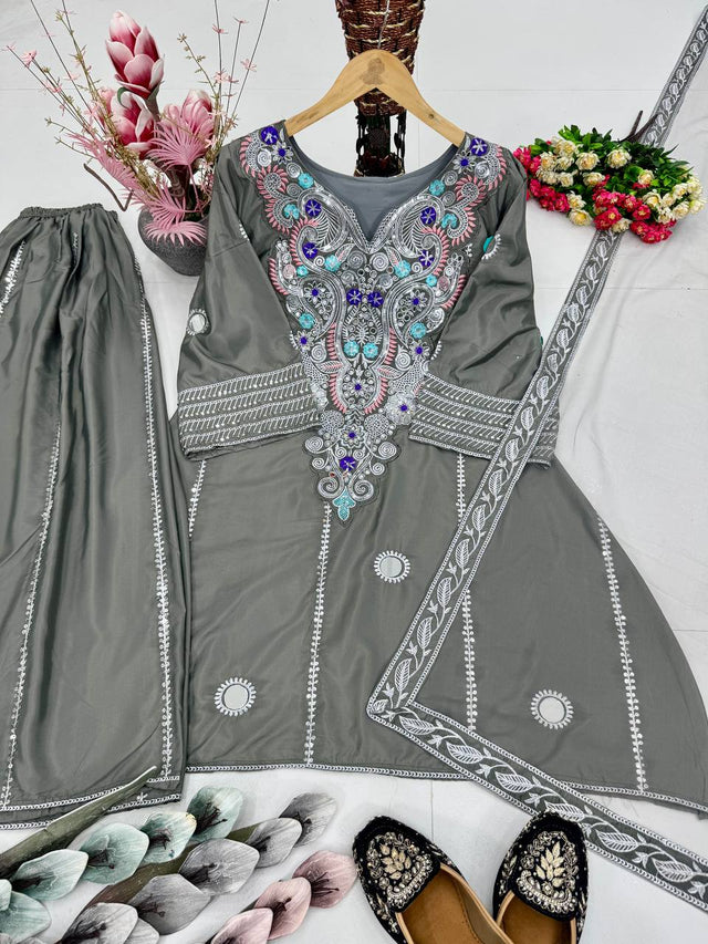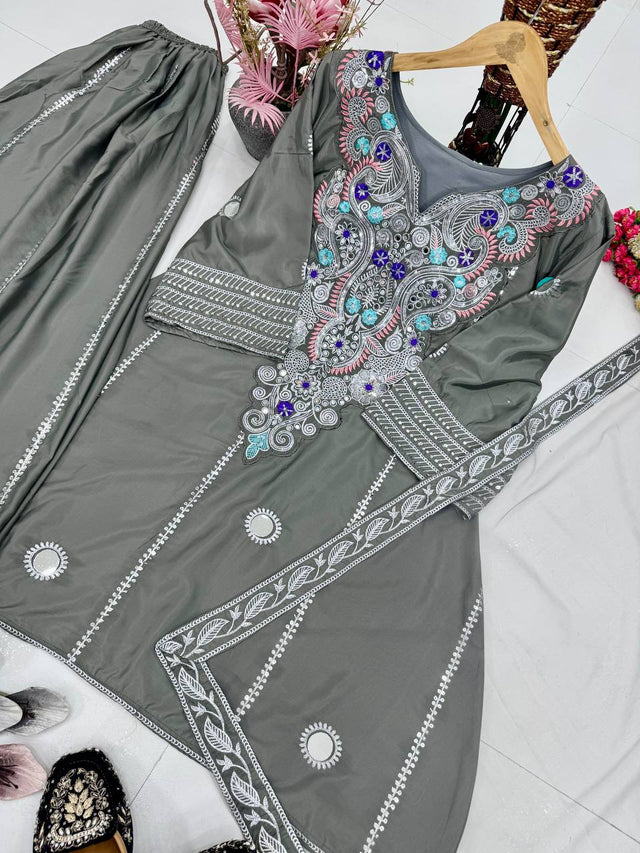 #top Work : Heavy Embroidered Sequence Work With Real Mirror Hand Work