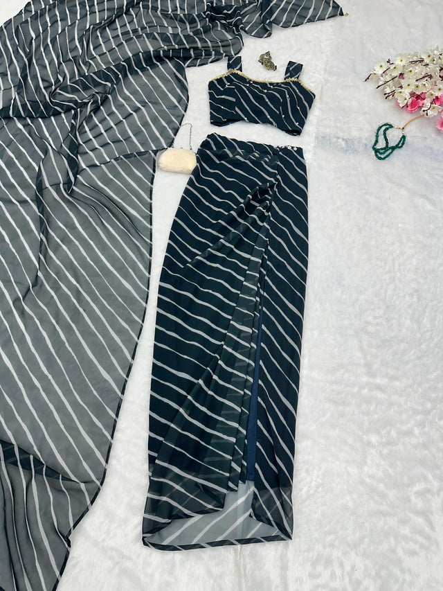 Stylish Black Color Draped Skirt With Top & Dupatta