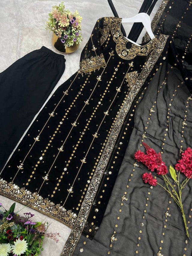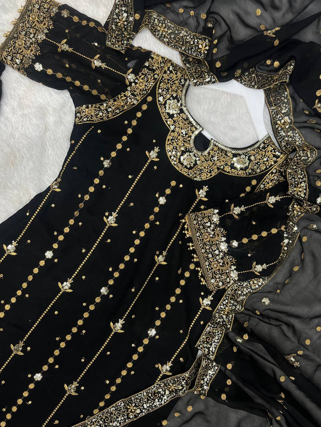 Stylish Black Georgette Sequence Work Anarkali Suit