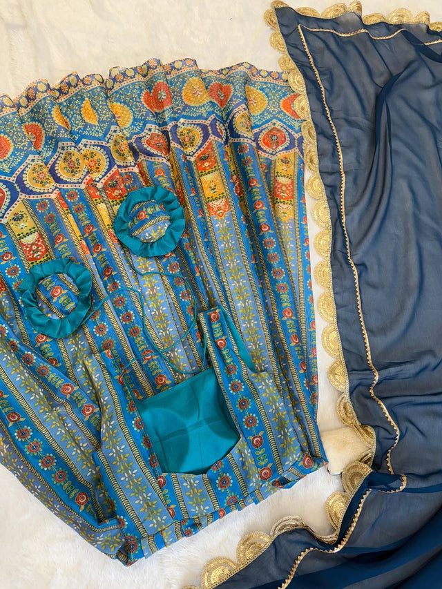 👗 Anarkali Gown - pure Jimmy organza silk digital printed padded gown with 54+gown length !! 8mtr Flair outfit ! 🔥