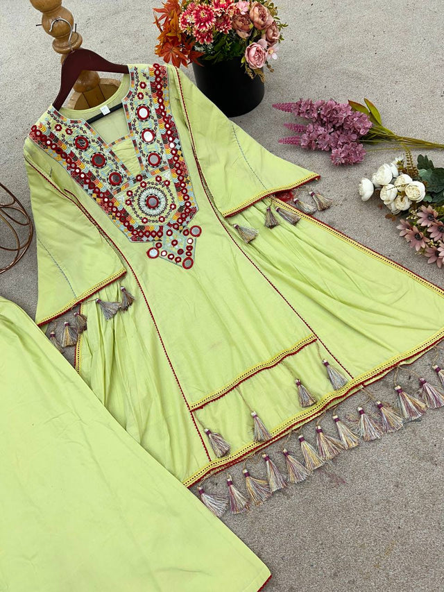 Pure Khadi Cotton With Embroidery Sequence Work With Real Mirror Work๐๐