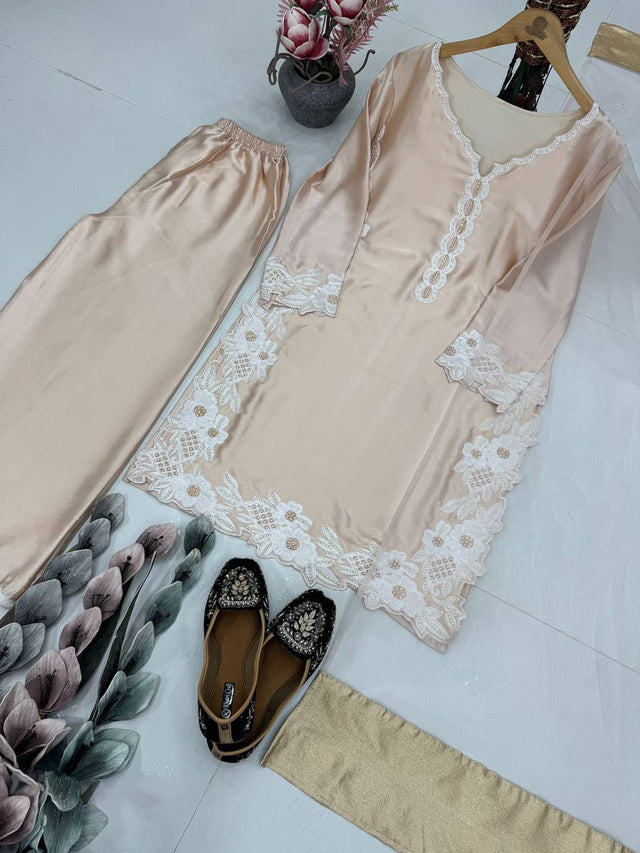 Stylish Peral Moti Hand Work Cream Color Palazzo Suit